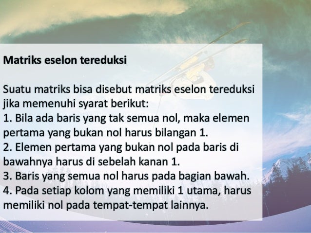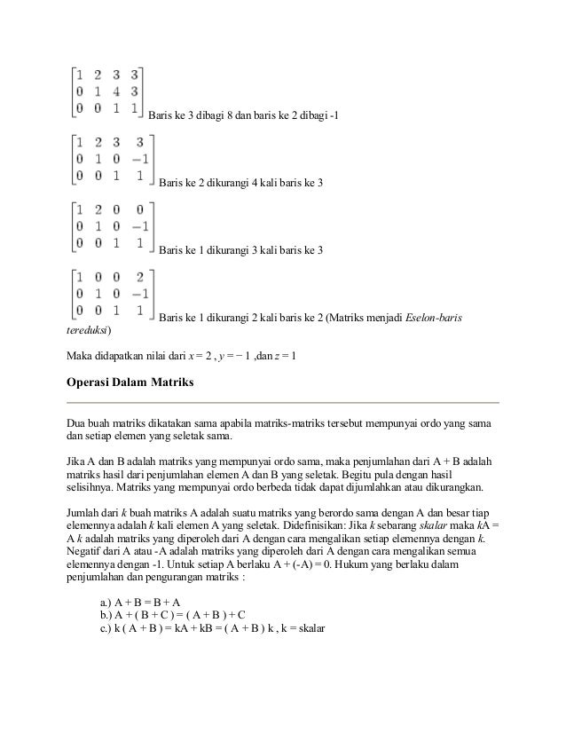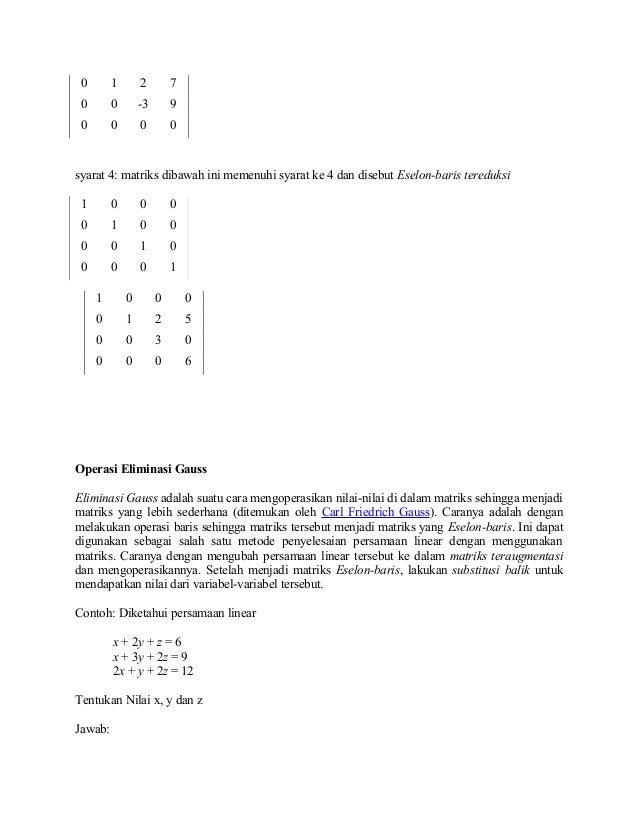 Aljabar Linear Eliminasi Gaussian from image.slidesharecdn.com We did not find results for: Contoh soal matriks bentuk eselon baris tereduksi. Maybe you would like to learn more about one of these? Check spelling or type a new query.